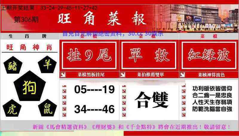 307期单【羊牛猪兔】 双 【狗马猴虎】开狗20准