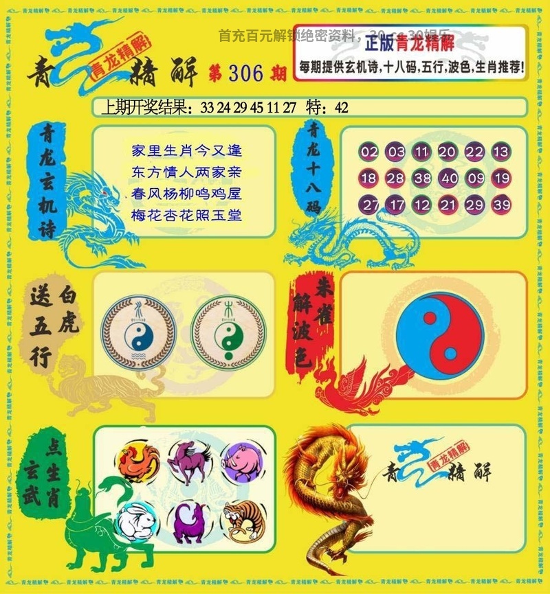 【正版青龙图精解】306期:家里生肖今又逢,东方情人两家亲,春风杨柳鸣鸡屋,梅花杏花照玉堂 【九肖中特】羊鸡龙兔鼠猪虎牛猴 【七尾中特】7418536 【绝杀一肖】狗狗狗 |